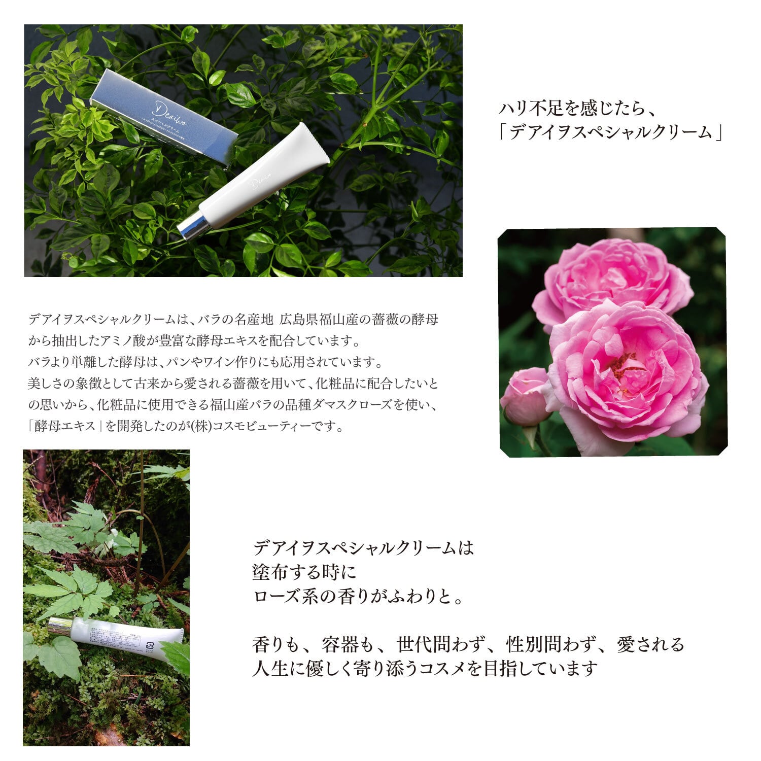 商品名「DeaiwoSpecialCream」の由来は、Specialな原料でSpecialなケアをしてほしいという
